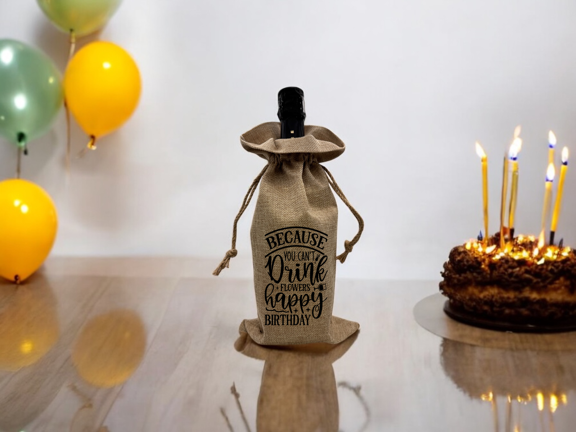 Faux Burlap Drawstring Bottle Bag